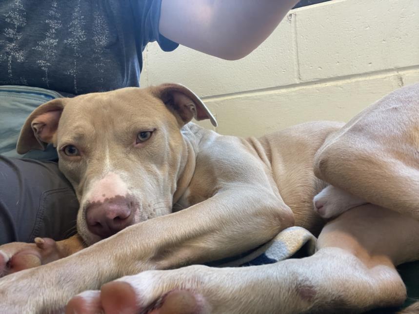"He is timid but doesn’t take long to warn up then just wants to snuggle. So gentle and loving."
