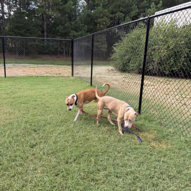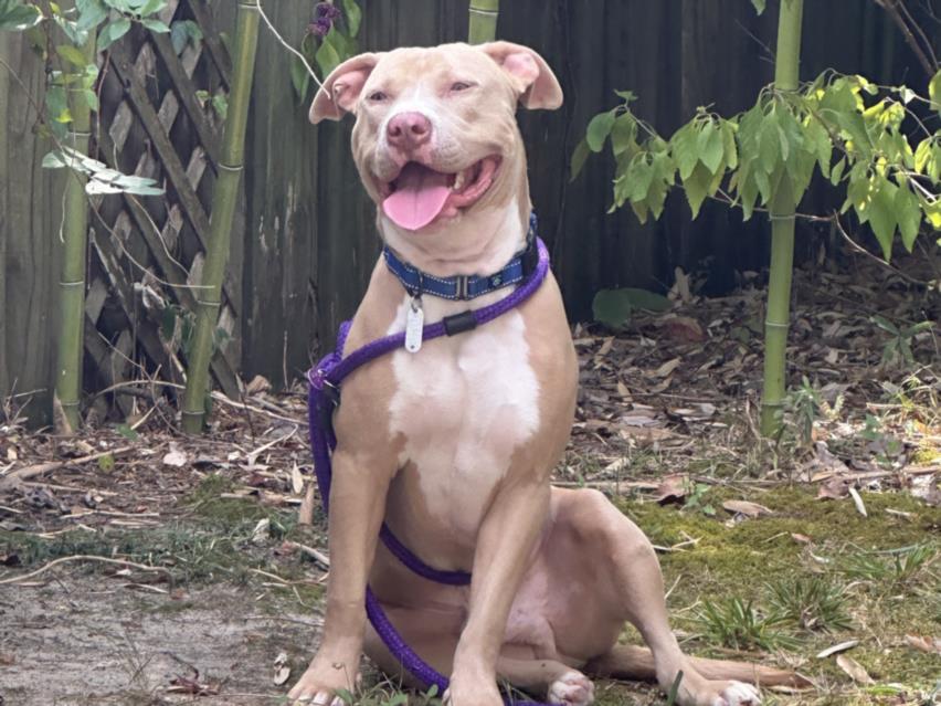 "Barbeque is just wonderful! Although he is very shy with new people, once he's warmed up, he's good to go. On our walk on Bolin Creek Trail, he would freeze whenever he saw someone approaching on the path, and then stand still until they'd pass. He never lunged or barked at any strangers– he just wanted to be sure they'd respect his space. At times, he would retreat off trail to avoid larger passerby (bikes and strollers).