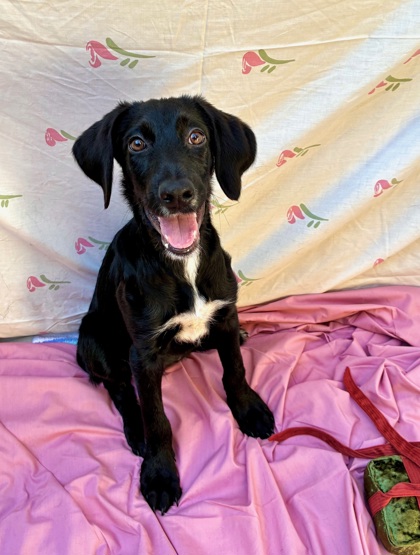 She is super sweet, great with everyone she meets, and loves to play with other dogs. We think she'd be a perfect family dog!