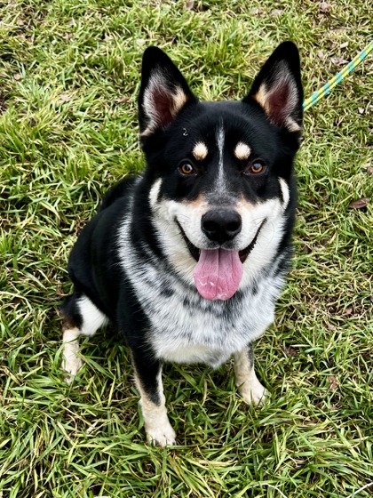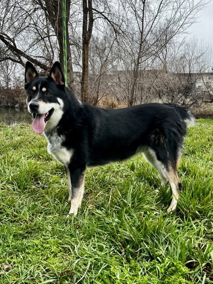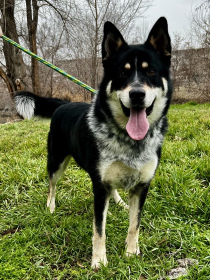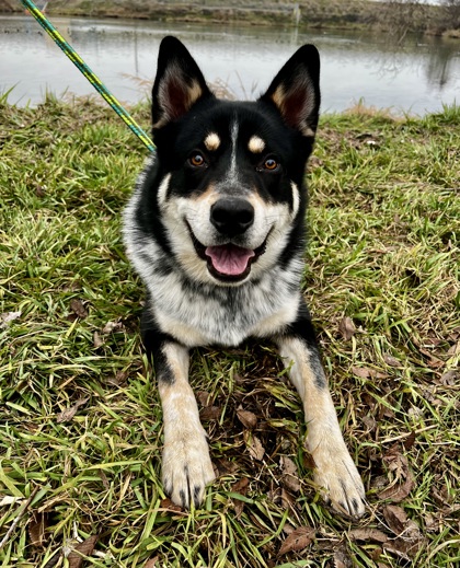 I am a male, black and tan Siberian Husky and Australian Cattle Dog.