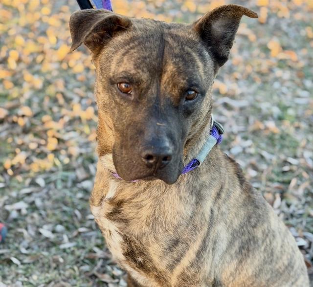 I am a neutered male, brown brindle and white Pit Bull Terrier mix.