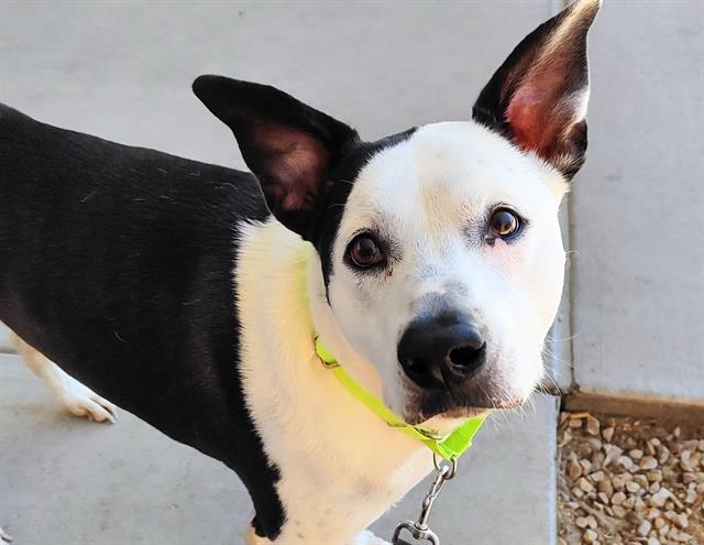 About: Juju is a black and white cutie who lived in one home his whole life before being surrendered to the shelter. He was reportedly good with kiddos, dogs of all sizes, cats and even livestock. He was house and crate trained and was well- behaved when left home alone. According to Juju’s former family, he can be nervous of loud noises like thunder and needs time to feel safe with new people or situations.