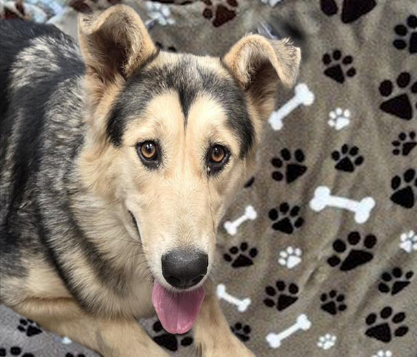 I am a spayed female, brown and black Alaskan Malamute mix.