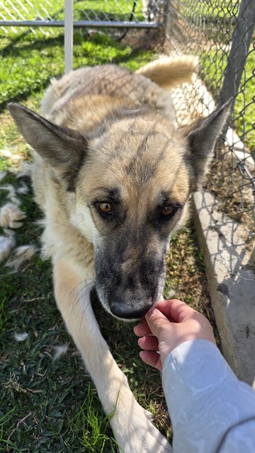 Description: I am a female, 74.00 lbs, tan and black German Shepherd Dog.