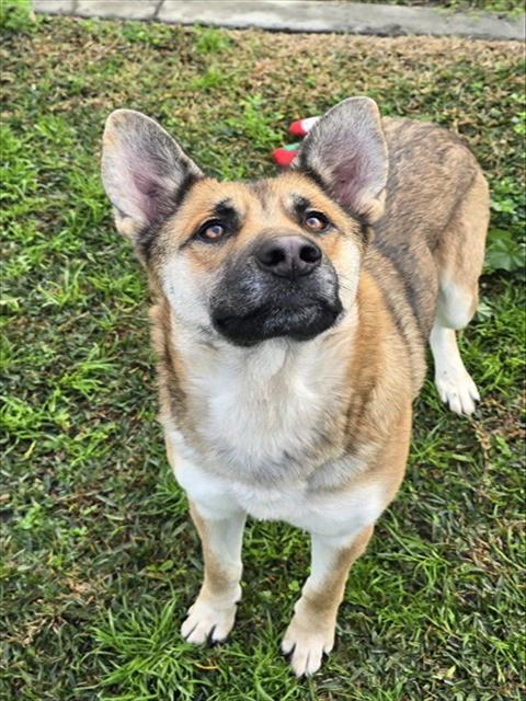 Description: I am a female, 59.00 lbs, brown and black German Shepherd Dog mix.