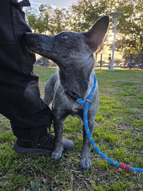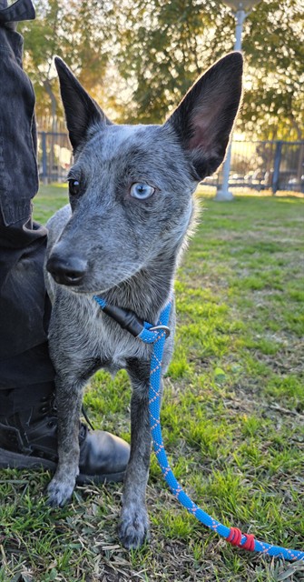 Description: I am a female, 26.00 lbs, blue merle Australian Cattle Dog.