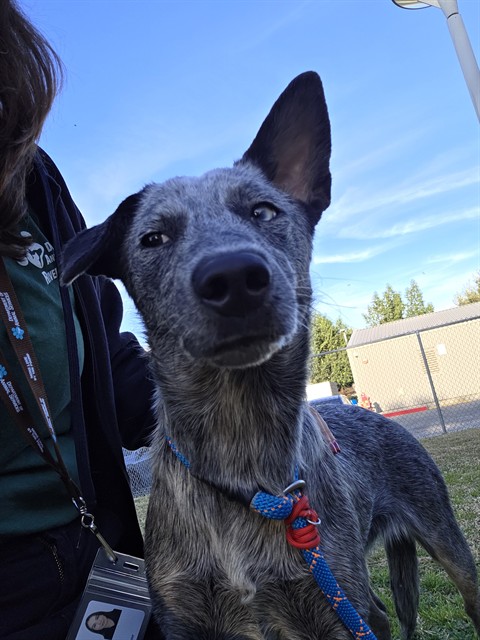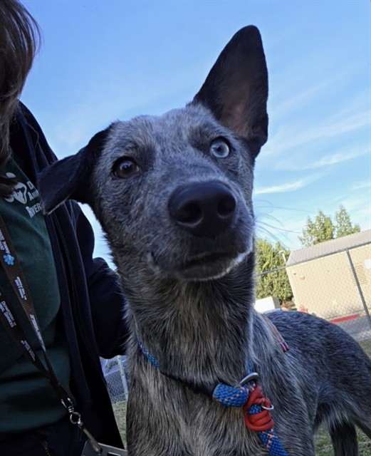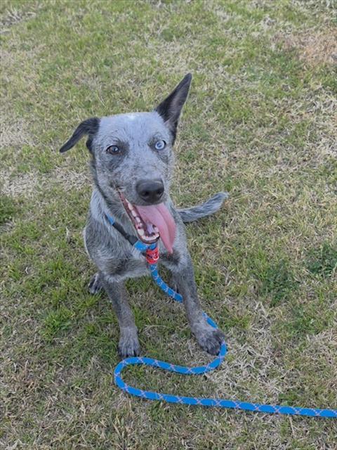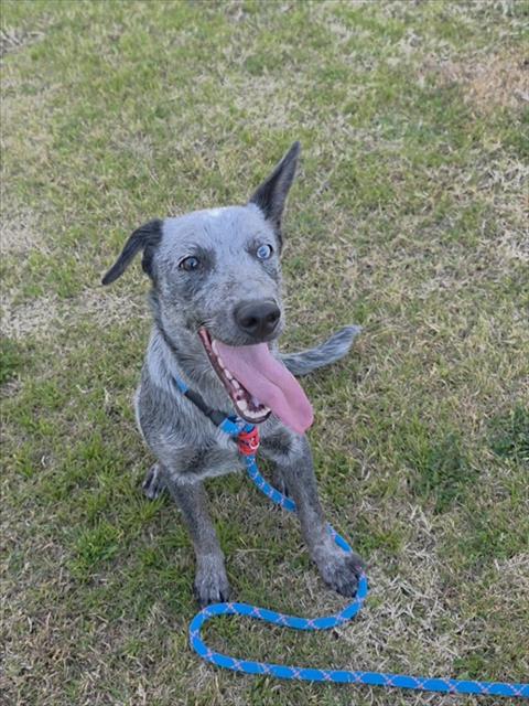 Description: I am a female, 28.00 lbs, blue merle Australian Cattle Dog.