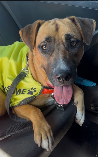 Description: I am a spayed female, 55.50 lbs, brown German Shepherd Dog.