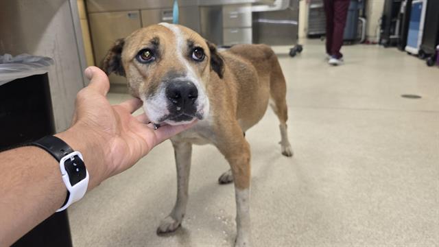 Description: I am a female, 51.80 lbs, brown and white Shepherd and Terrier.