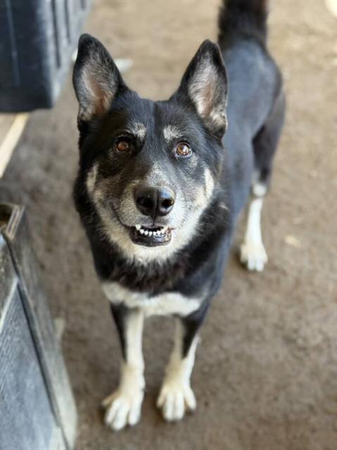 Description: I am a female, 48.10 lbs, black and tan Siberian Husky and German Shepherd Dog.