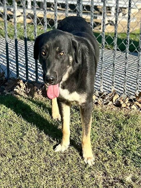 Description: I am a male, 103.00 lbs, black Rottweiler and German Shepherd Dog.
