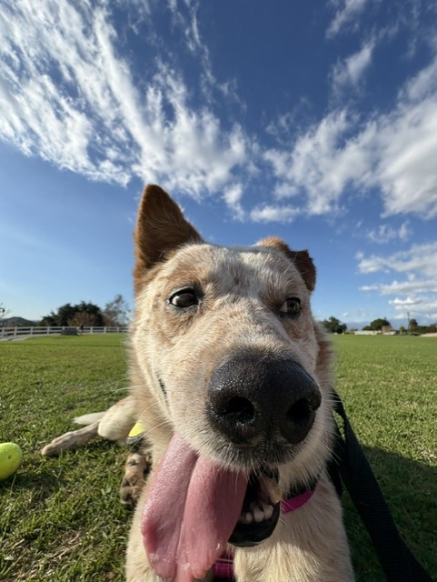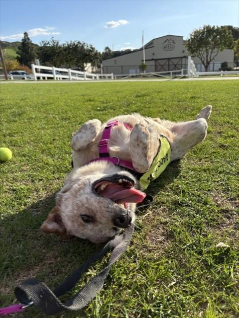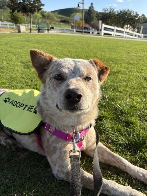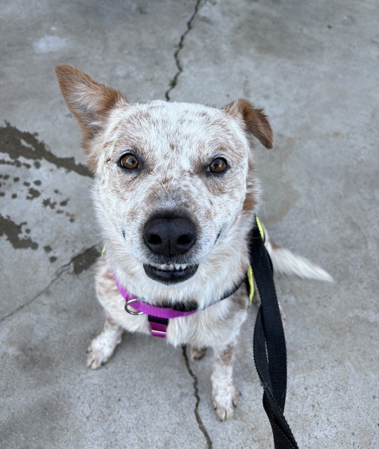Description: I am a male, tan and white Australian Cattle Dog mix.