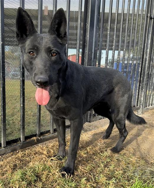 Description: I am a female, 63.50 lbs, black German Shepherd Dog.