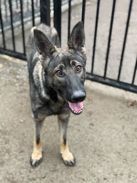 Description: I am a female, 57.00 lbs, black and tan German Shepherd Dog mix.