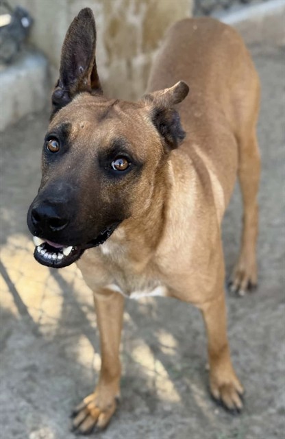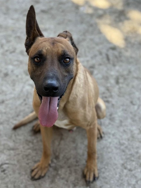 Description: I am a male, 45.80 lbs, brown Belgian Malinois mix.