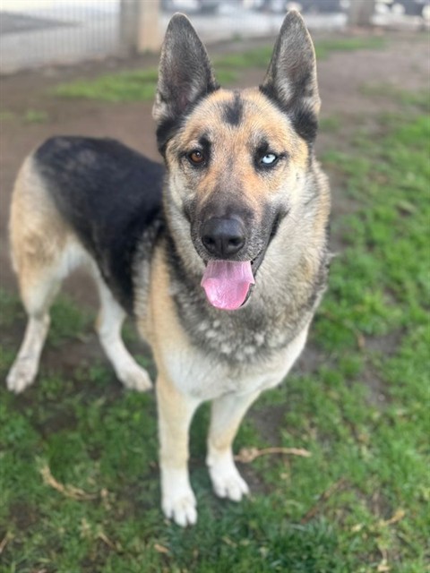 Description: I am a male, 100.50 lbs, tan and black German Shepherd Dog and Siberian Husky.