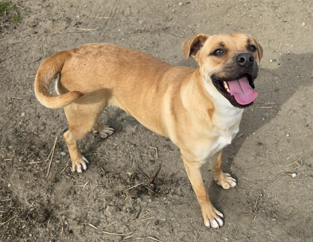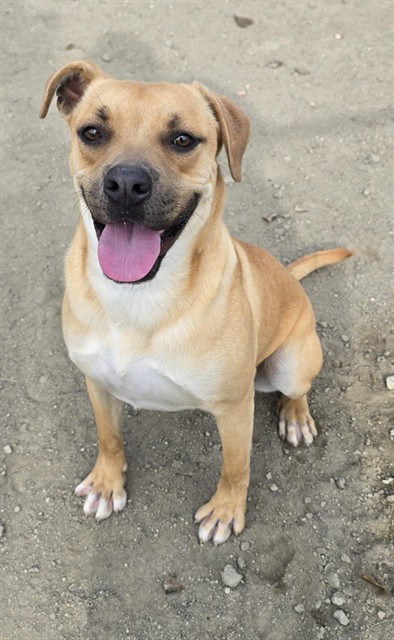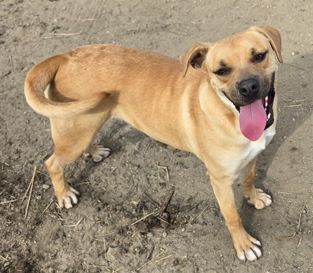 Description: I am a neutered male, 52.20 lbs, brown Boxer mix.