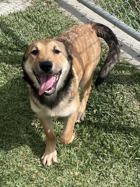 Description: I am a spayed female, 25.00 lbs, brown Shepherd mix.