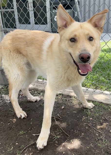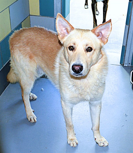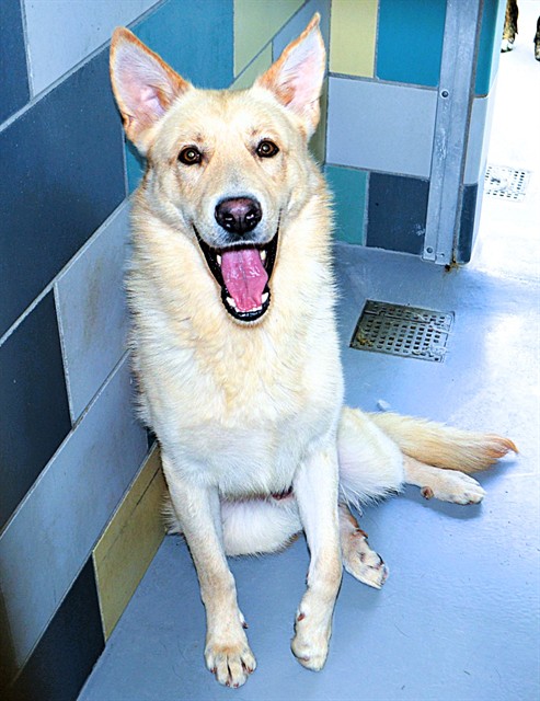 Description: I am a neutered male, 68.20 lbs, white and cream Shepherd mix.