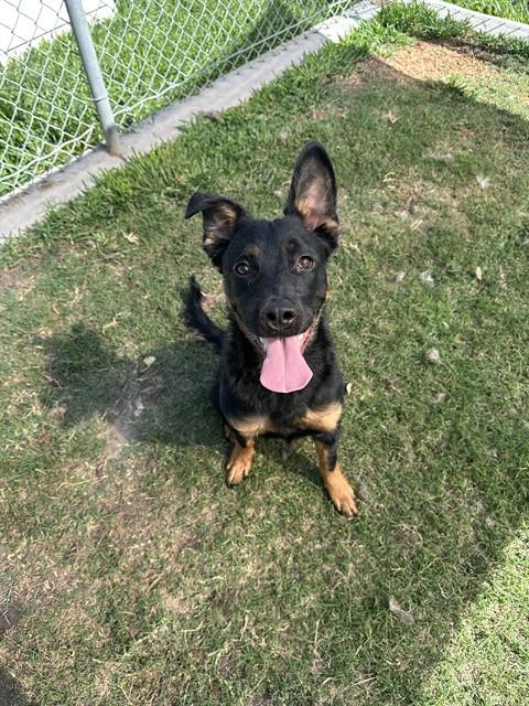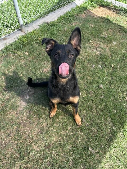 Description: I am a male, 38.00 lbs, black and brown Rottweiler mix.