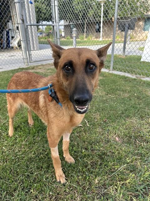 Description: I am a female, 50.60 lbs, apricot Shepherd mix.