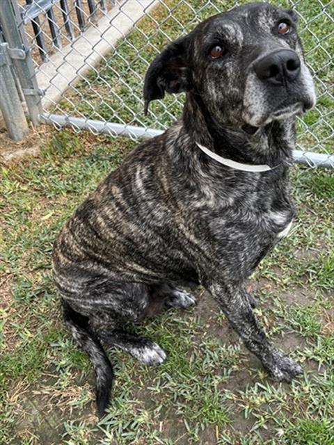 Description: I am a female, 81.40 lbs, brown brindle Catahoula Leopard Hound mix.