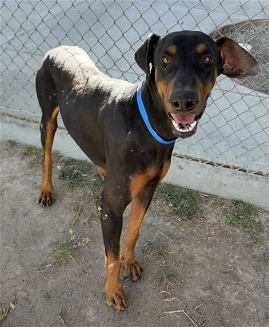 Description: I am a male, 60.00 lbs, black and brown Doberman Pinscher.