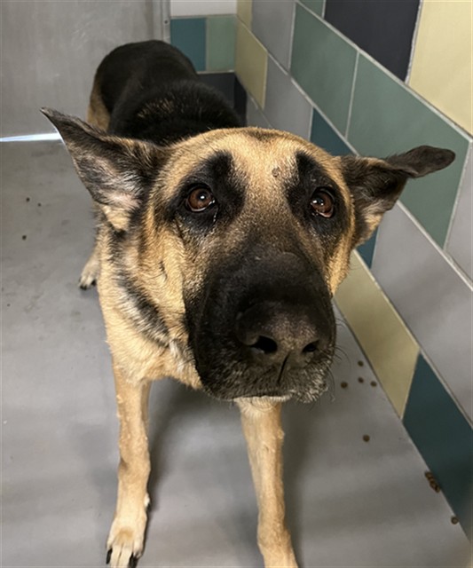 Description: I am a male, 80.00 lbs, black and tan German Shepherd Dog.