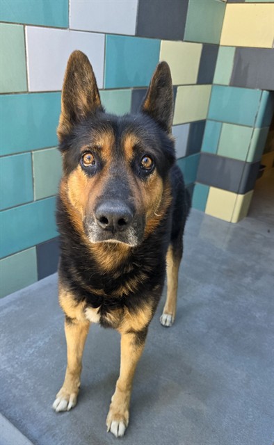 Description: I am a male, 78.00 lbs, black and brown German Shepherd Dog.