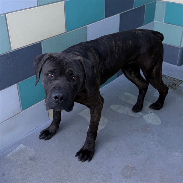 Description: I am a male, 97.60 lbs, black brindle and brown brindle Cane Corso.