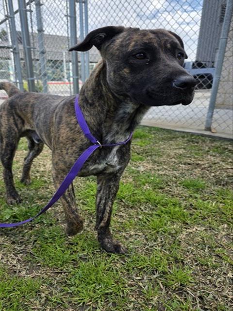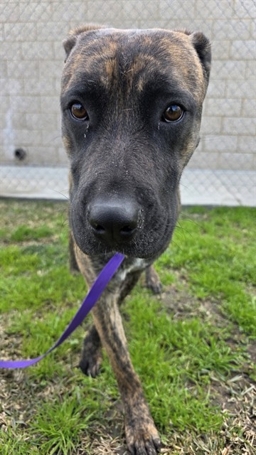 Description: I am a male, 62.20 lbs, black brindle Pit Bull Terrier mix.