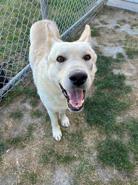Description: I am a male, 74.00 lbs, cream German Shepherd Dog.