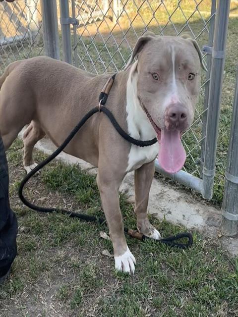 Description: I am a male, 78.50 lbs, red and white Pit Bull Terrier.