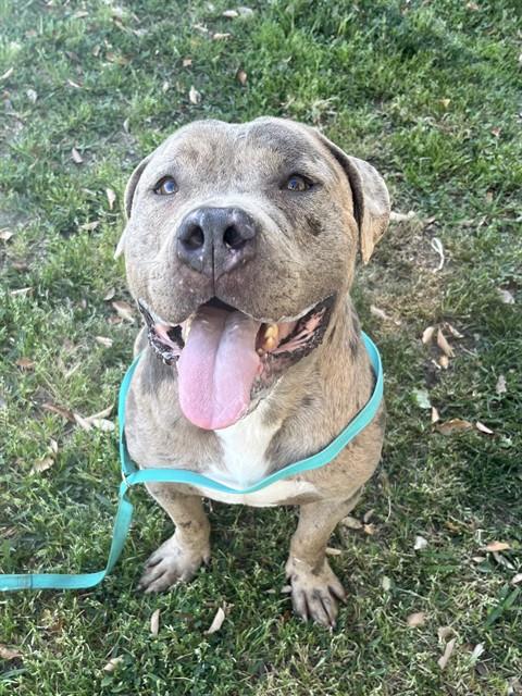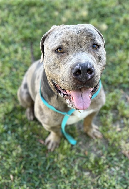Description: I am a male, 67.00 lbs, blue merle Pit Bull Terrier.