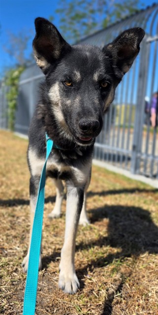 Description: I am a spayed female, 35.00 lbs, black and tan Shepherd mix.
