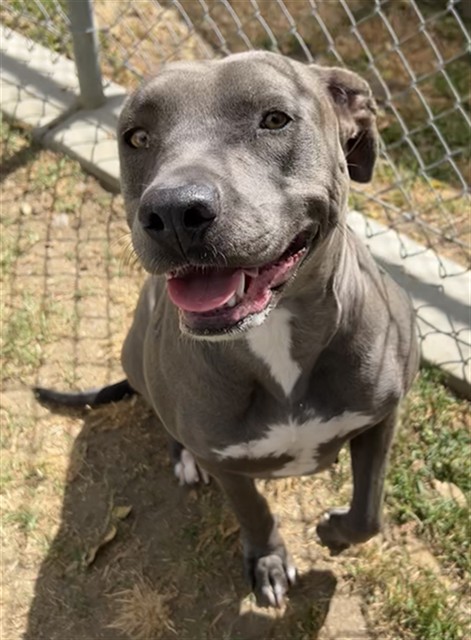 Description: I am a female, 62.20 lbs, blue American Pit Bull Terrier mix.