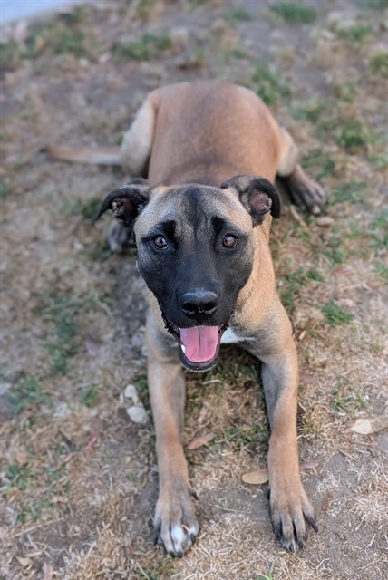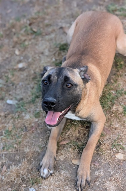 Description: I am a female, 48.20 lbs, brown and black Shepherd mix.