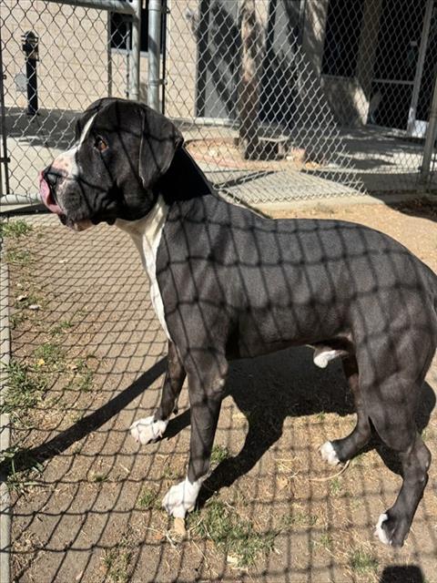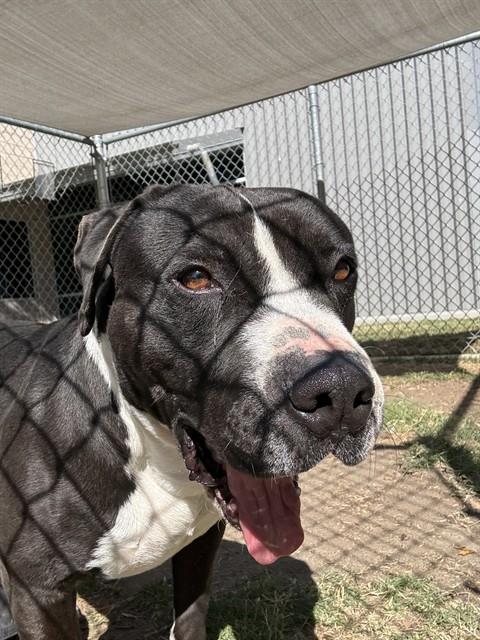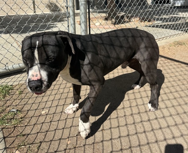 Description: I am a male, 75.00 lbs, black and white Pit Bull Terrier.