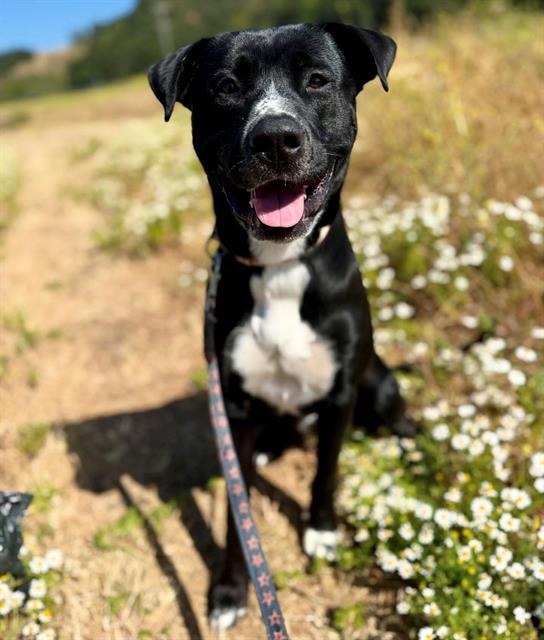 Description: My name is Odis and I am a male, black and white Labrador Retriever mix.