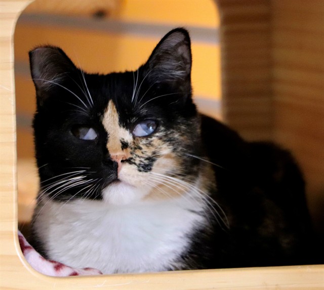Description: My name is Maude and I am a female, tortie and white Domestic Shorthair.