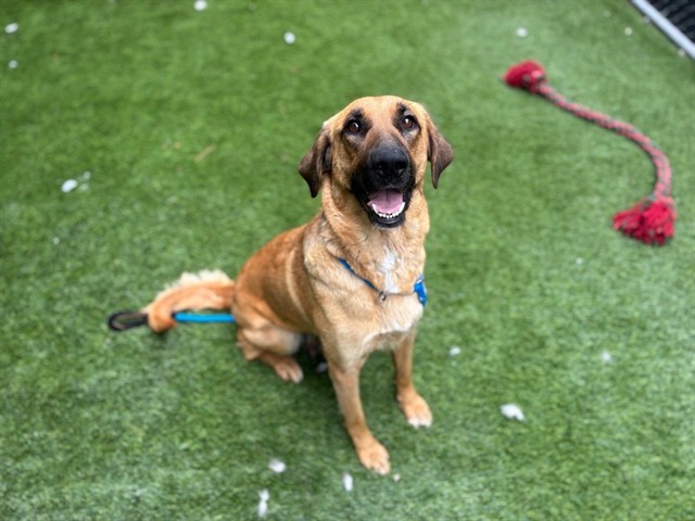 I am a spayed female, tan and black Anatolian Shepherd mix.