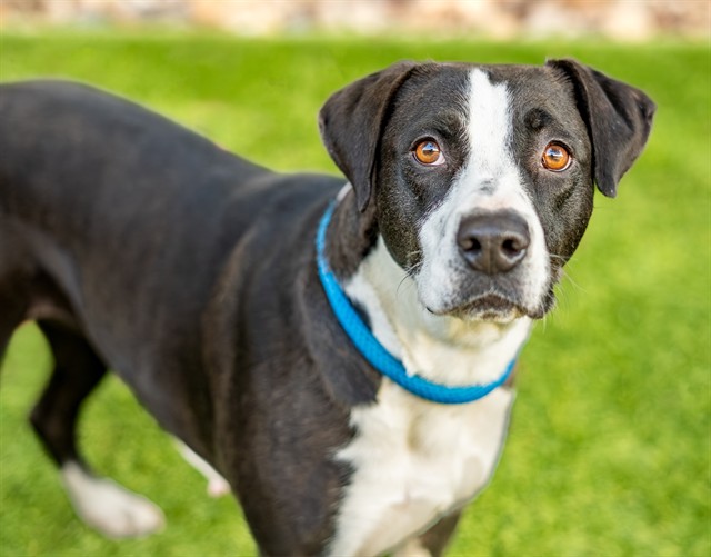 Jackie can be somewhat reserved when she is first approached but warms up after a few minutes and enjoys playgroups with other dogs.