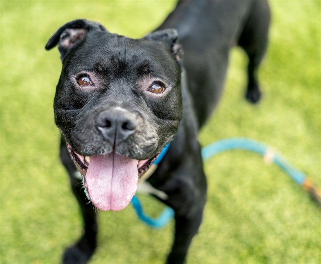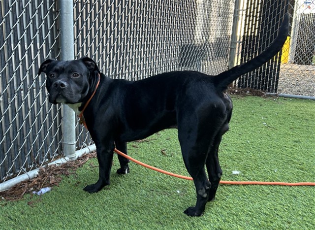 Meet Rocky – The Energetic and High-Spirited Boy. This 4-year-old, neutered Pit Bull mix is a high-energy, high-FAS dog who can be reactive in the kennel but shows moments of curiosity and engagement. While in his kennel, Rocky often barks, pants, spins, circles, and jumps, placing his paws on the walls and doors. These behaviors indicate kennel stress and a high arousal state, and he may show signs of declining mental well-being in this environment. When offered a hand, he will stop to sniff and gently touch it with his snout, showing that he can be curious and affiliative despite his stress. Rocky can be challenging to handle at times. He has attempted leash biting when leaving or returning to his kennel, but he can be redirected with consistent guidance. He is easy to leash and walks well on leash once outside. He’s cooperative during handling in the courtyard, allowing staff to examine him with minimal difficulty. Rocky may fence fight when exiting the ward, so careful management and closed dividers are recommended. This spirited boy needs a home that can provide structure, consistent training, and outlets for his energy. With guidance, patience, and enrichment, Rocky has the potential to be a devoted, engaging companion for someone experienced with high-arousal dogs.