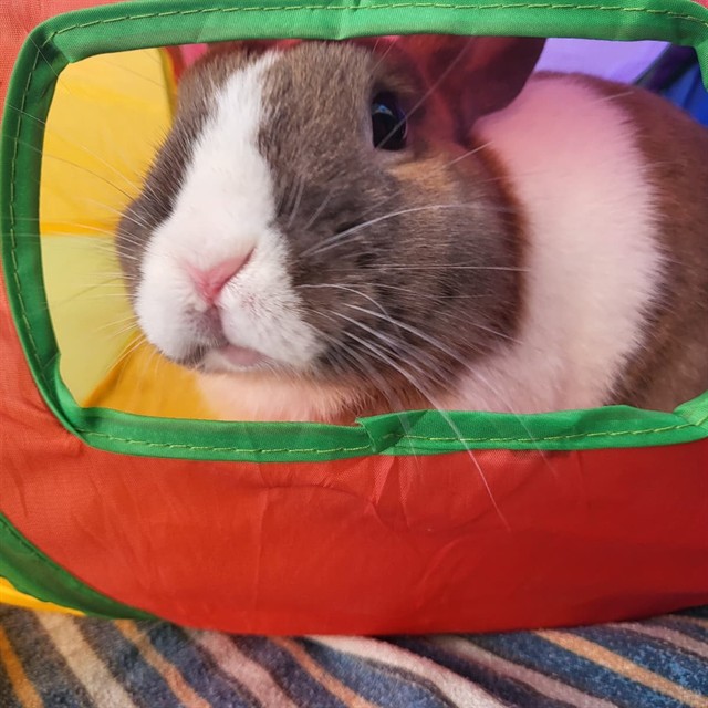 Meet Scotty! He is a friendly and outgoing boy, a total charmer who loves to greet everyone with a twitch of the nose. Scotty is social and enjoys “showing” his humans the ropes - whether it’s nudging you for the perfect head scratch or demonstrating how to arrange his favorite hay pile just right. If you’re ready for a bold, affectionate buddy who’ll keep you smiling, Scotty’s your guy!