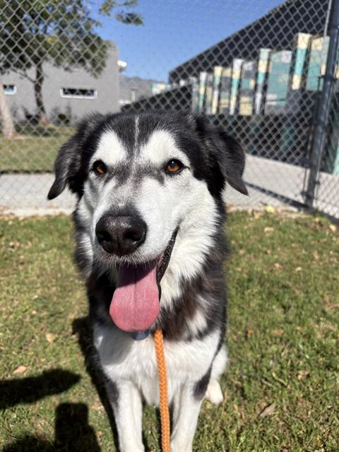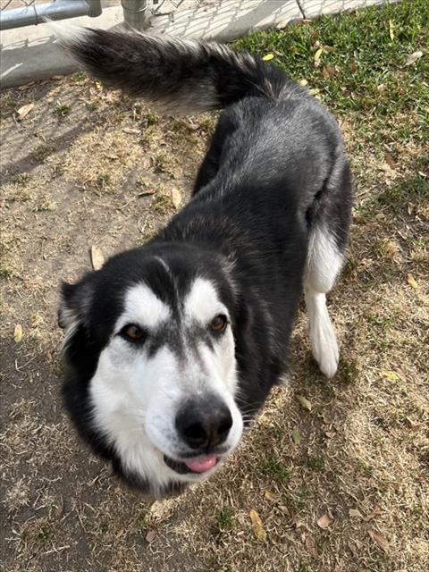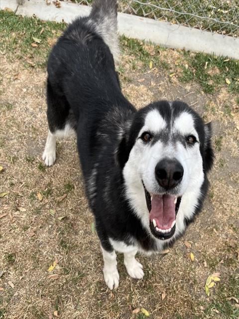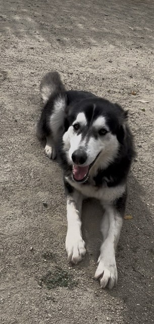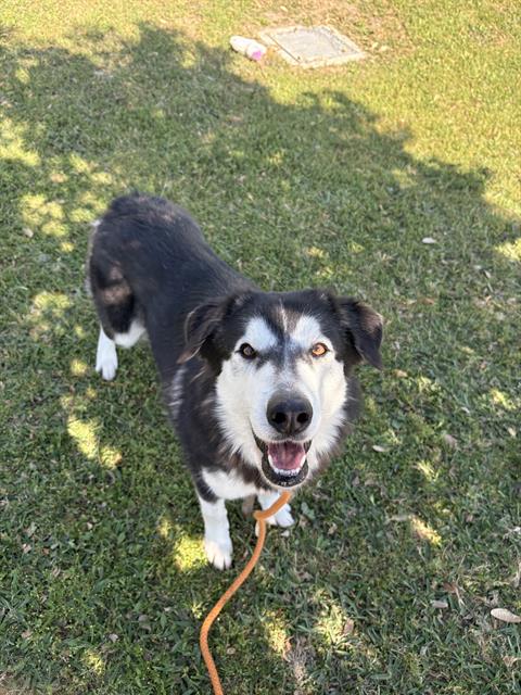 Description: I am a spayed female, 46.20 lbs, black and white Siberian Husky mix.